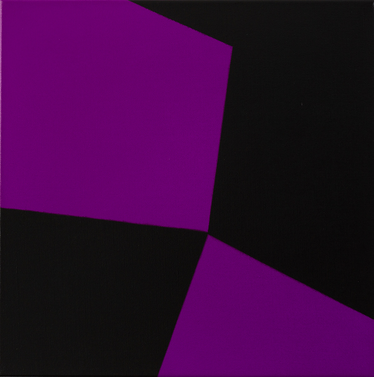 Gemälde: Abstrakt, mit violetten und schwarzen Flächen, die sich ineinander verschränken. Minimalistische abstrakte Farbfeldmalerei.