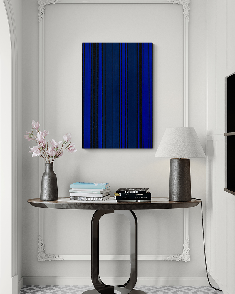 Dieses Acrylgemälde entsteht aus hochwertigen, reinen Künstlerpigmenten - insbesondere einem intensiven, echten Kobaltblau - auf sorgfältig selbst grundiertem Leinwandgewebe.